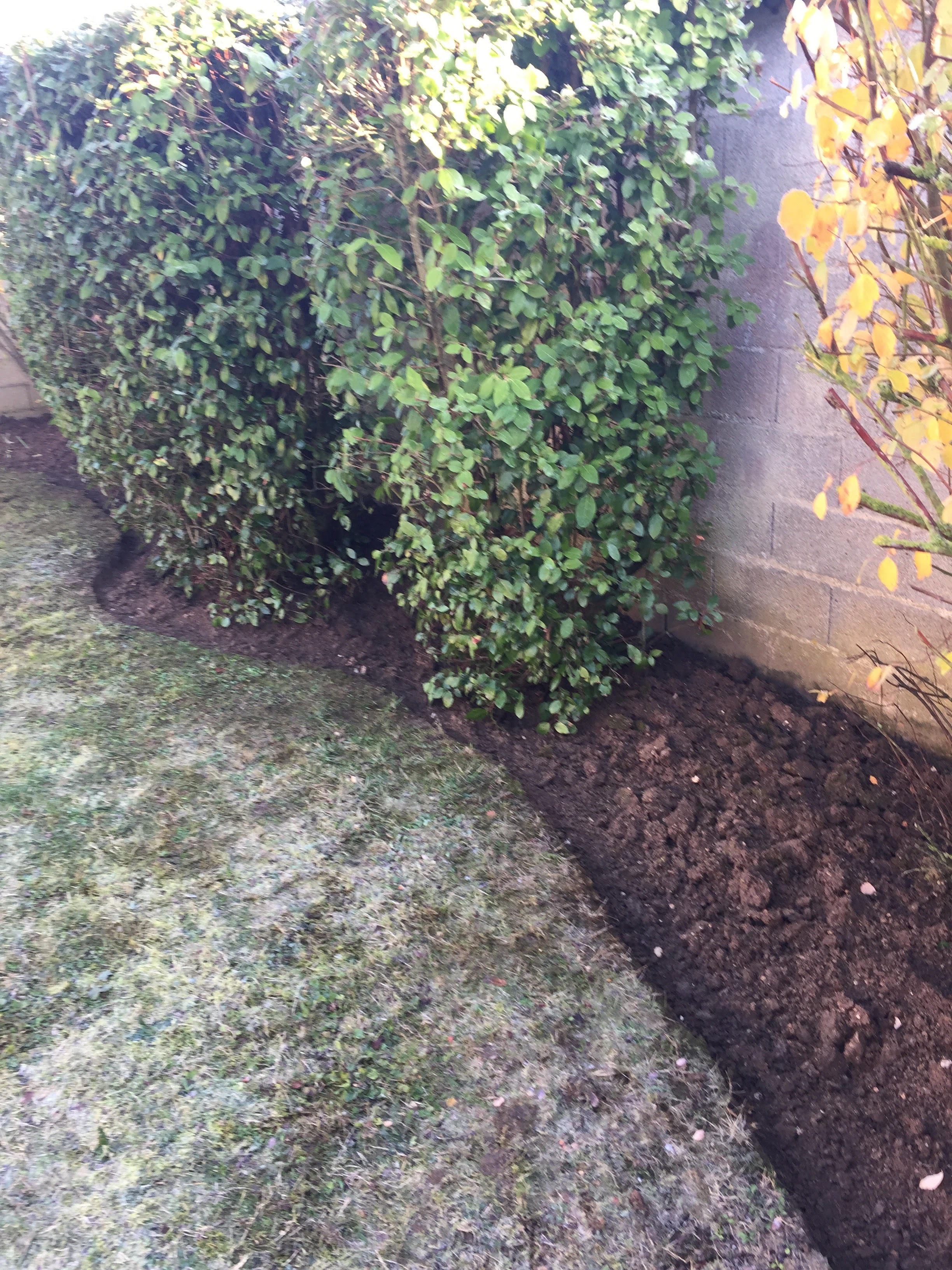 Après une dernière taille des arbustes, nos jardiniers ont fait le bêchage des massifs avec la découpe des bordures.