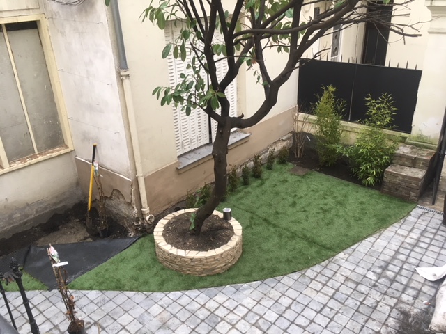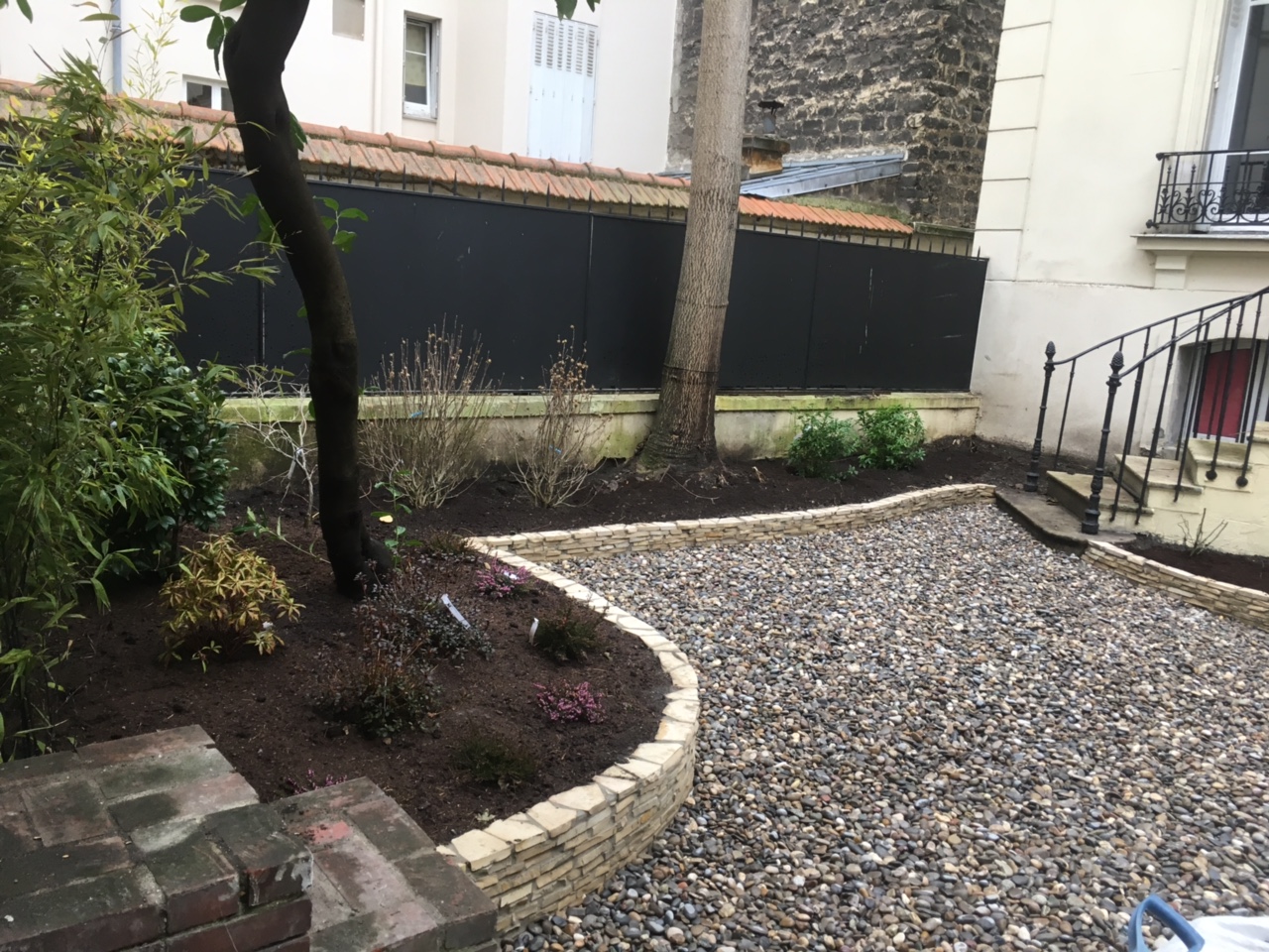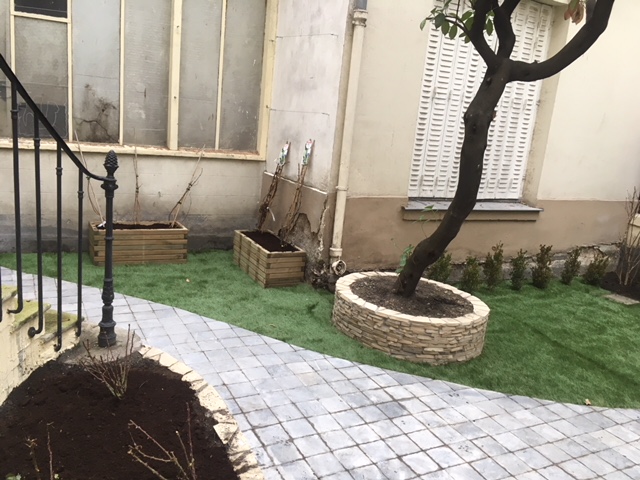 Voici les travaux réalisés par nos jardiniers pour ce petit jardin de ville à Levallois Perret :